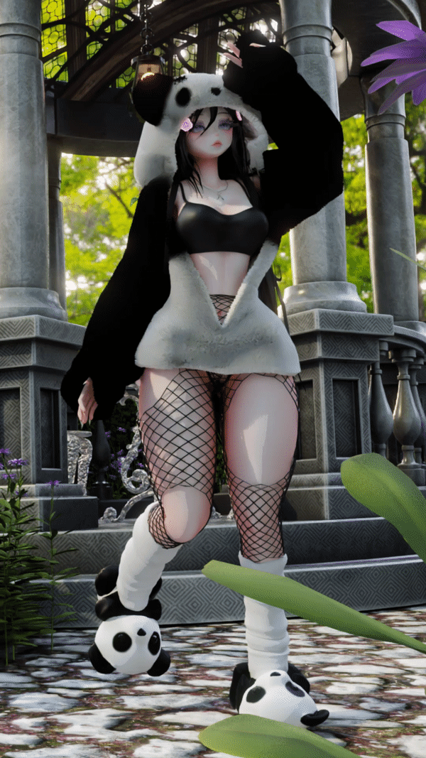Custom Panda Outfit by bunisu#4924: Lace Bra & Panties, Shorts, Panda Hoodie, Panda ears and tail, Glasses, Bra, Panda Slippers, Edited backpack, Edited Hair and Top.